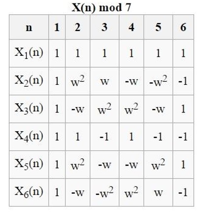 We have so there are six Dirichlet characters in this case. We consider the six roots of unity