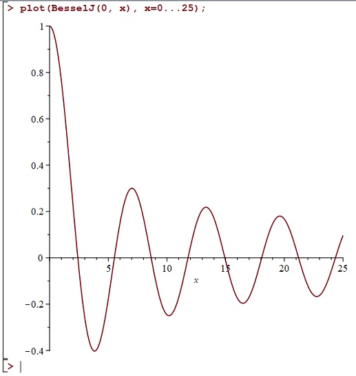 We can easily plot using MAPLE and it looks like a kind of damped cosine function. Here is a quick plot for positive values of