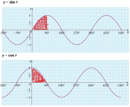 . Looking at graphs of the sine and cosine functions, we can easily imagine that we can switch between the two and that this average also remains unchanged if we restrict the range of integration to the interval from